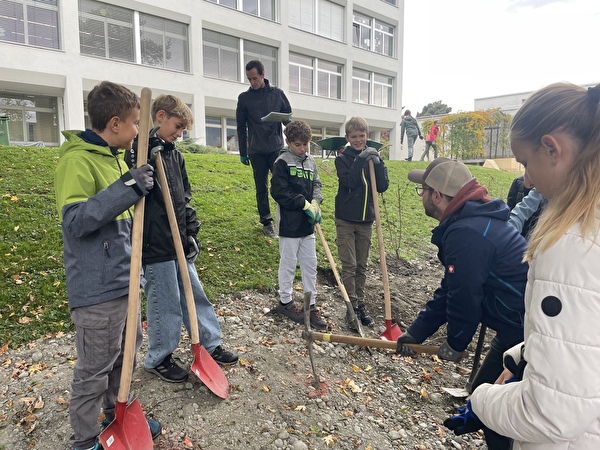 Auf dem Areal vom Schulhaus Wyden wurde ein bedeutendes Projekt zur Förderung der Biodiversität und des Umweltschutzes erfolgreich umgesetzt. In Zusammenarbeit mit dem Bauamt Widnau, dem Verein WWF und mit tatkräftiger Unterstützung von verschiedenen Klassen und Lehrpersonen wurden die alten, invasive Heckenarten ausgerissen und neue, einheimische Hecken rund um das Schulgebäude gepflanzt. Die Pflanzung fand am Dienstag, 21. Oktober statt. Mit viel Enthusiasmus und Freude waren über 100 Schülerinnen und Schüler dabei, die Setzlinge in die Erde zu bringen.