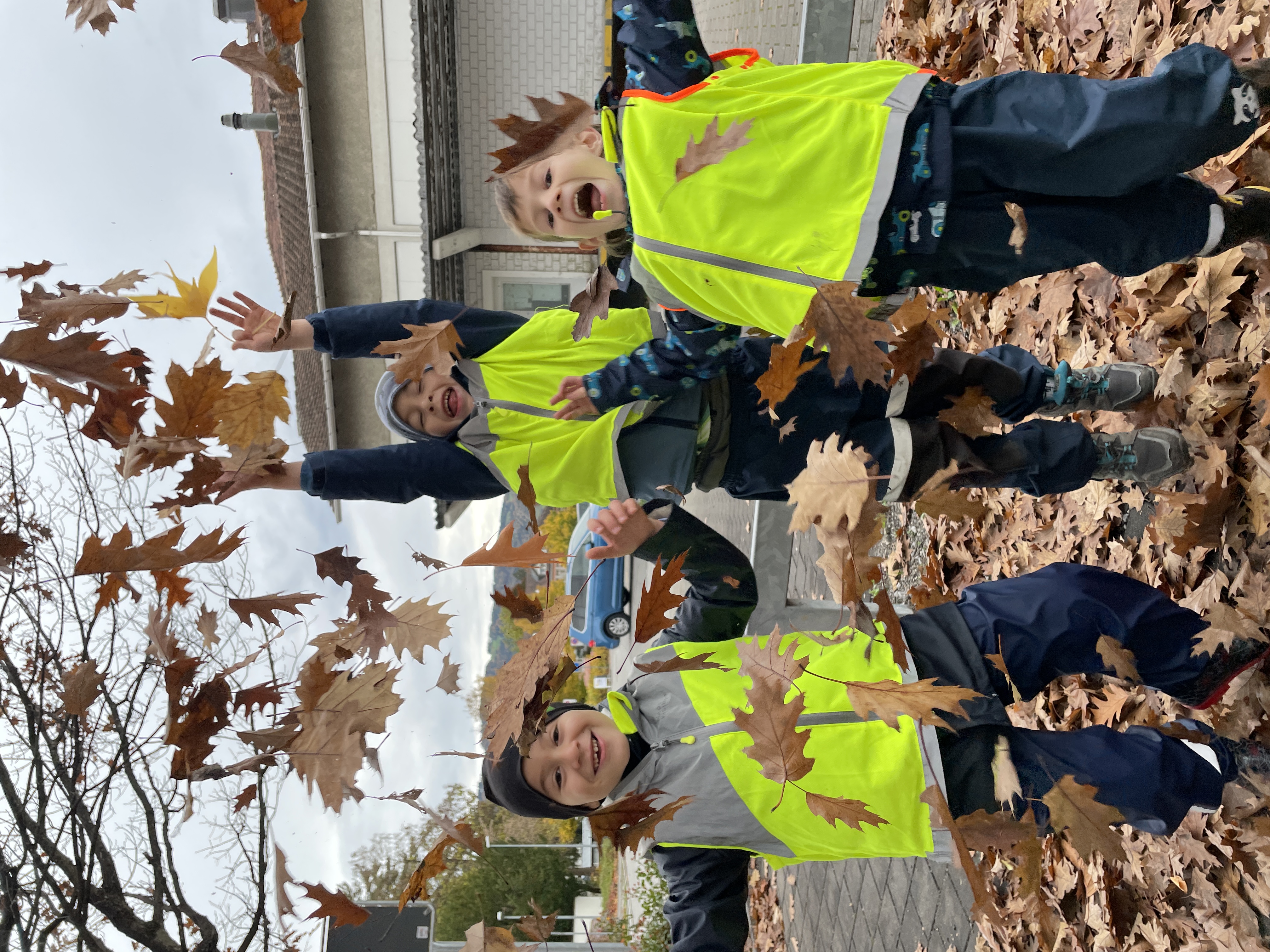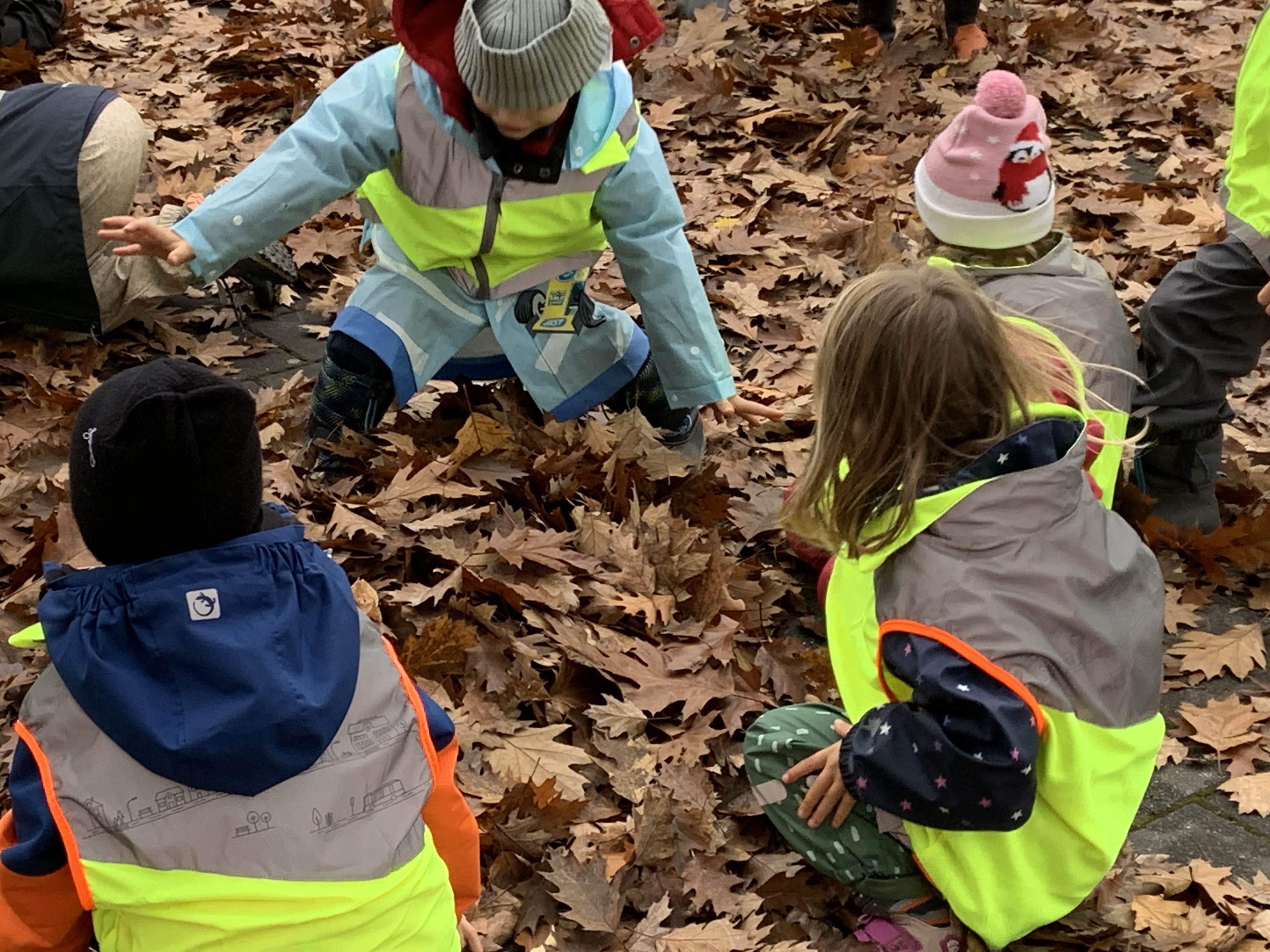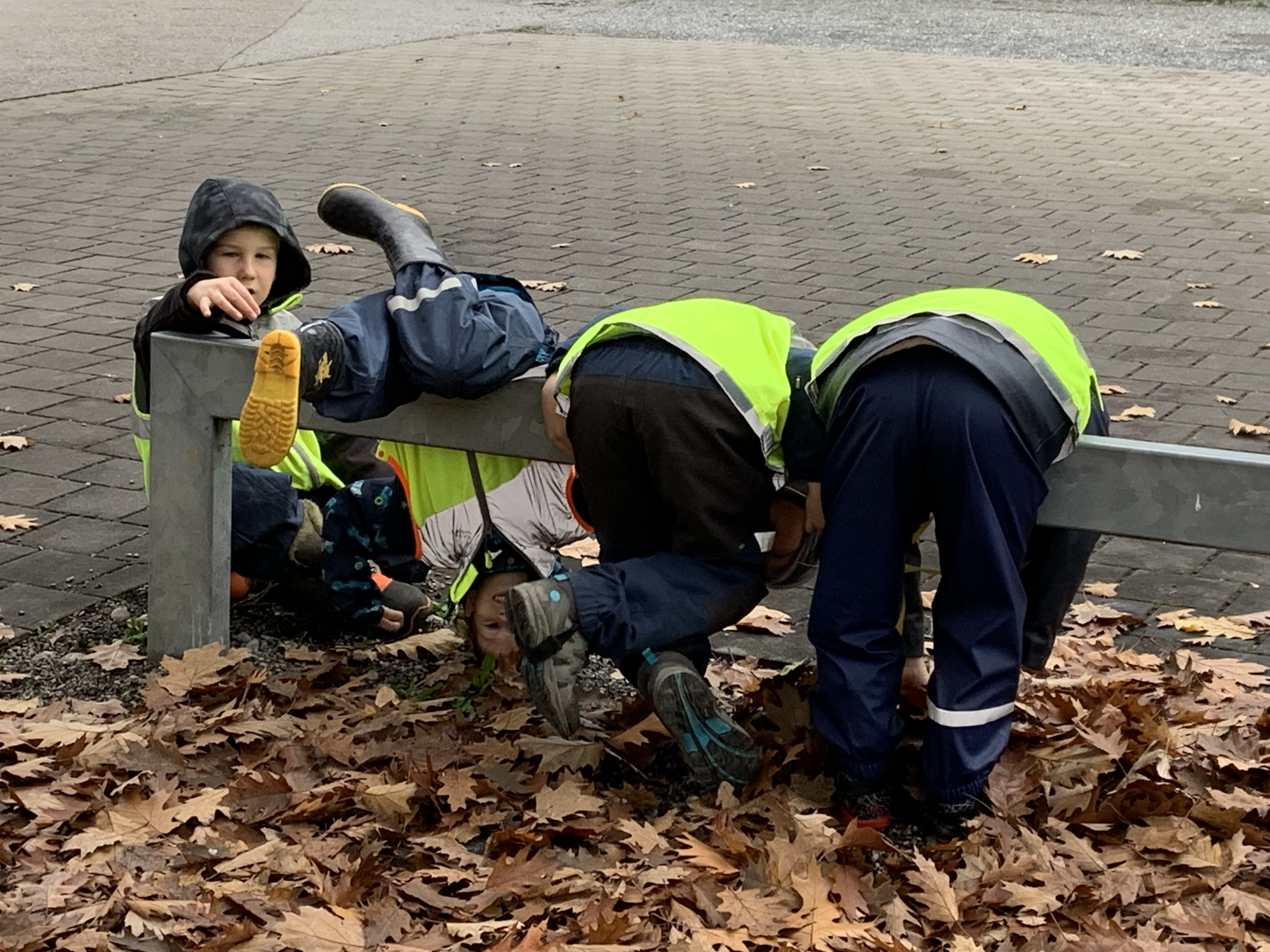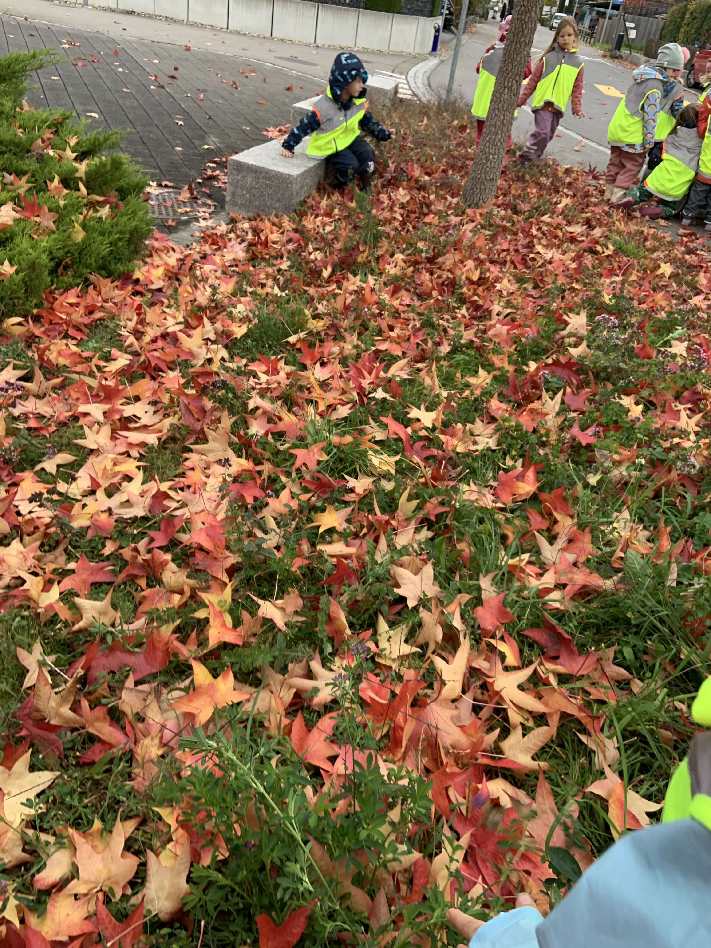 Zuerst kam die schlechte Nachricht - Sturm an unserem geplanten Waldmorgen. So schnell liessen wir uns aber nicht unterkriegen und planten einen Herbstmorgen bei uns rund um den Kindergarten Schlatt. Das Wetter meinte es dann doch noch gut mit uns und wir durften einen Spaziergang mit Wind erleben. Wir wurden von vielen Blättern umwirbelt, durften fasziniert den Vögeln in der Luft zuschauen und haben jede Menge wunderschöne Herbstblätter gesammelt. Es war ein Spaziergang zum Staunen, Entdecken und Erleben.