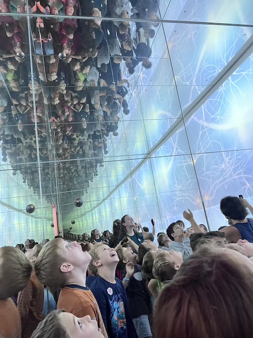 Die Reise begann in einem Raum, der wie ein riesiger Mund gestaltet war – mit Zunge, Zähnen und Halszäpfchen. Weiter ging es durch die Schreikammer mit Stimmbändern und Speiseröhre. Im Magen konnten wir die spannende Struktur genauer betrachten und machten sogar einen Abstecher zum Herzen. Schließlich erlebten wir im Darm den letzten Teil des Verdauungswegs.